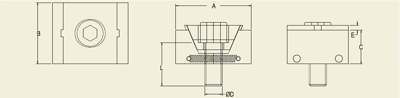 | MODEL | A | B | C | ØD X L | E | Tightening Torque Nm MAx.* | Clamping Force Max. |